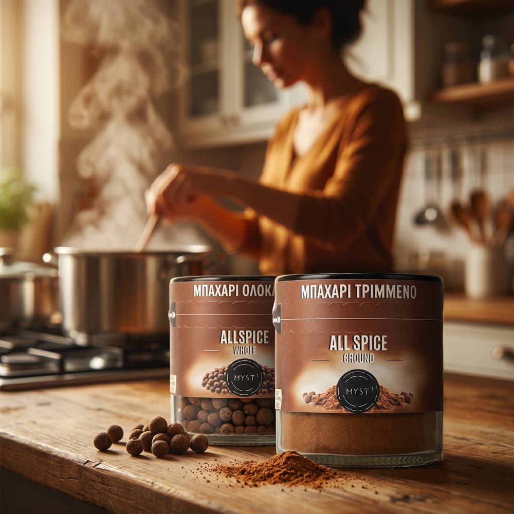 Προέρχεται από τους αποξηραμένους καρπούς του δέντρου Pimenta dioica, που ευδοκιμεί στην Καραϊβική και τη Κεντρική Αμερική. Το μπαχάρι χρησιμοποιείται στη Μεσογειακή, Ανατολίτικη, Καραϊβική και Λατινοαμερικανική κουζίνα. Ταιριάζει υπέροχα με κρέατα, κοκκινιστά, λαχανικά, ρύζι, σάλτσες, πίτες, γλυκά, μαρινάδες και ζεστά ροφήματα.