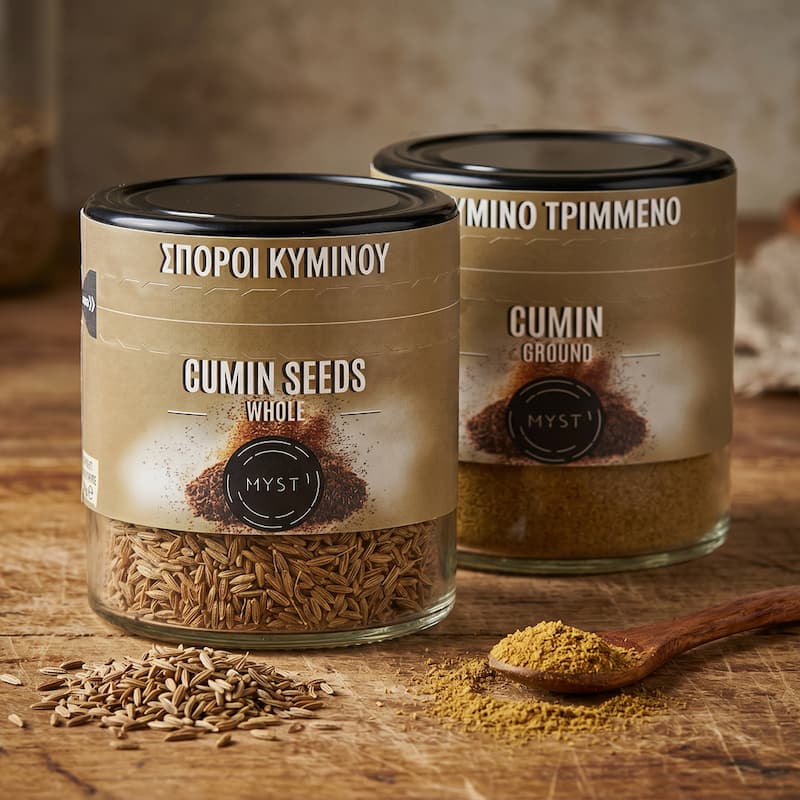 Προέρχεται από το φυτό Cuminum cyminum και αποτελεί βασικό συστατικό της Μεσογειακής, Ανατολίτικης, Ασιατικής και Λατινοαμερικανικής κουζίνας. Ταιριάζει υπέροχα με κρέατα, όσπρια, λαχανικά, ρύζι, σάλτσες και μείγματα μπαχαρικών, προσθέτοντας ζεστασιά και πολυπλοκότητα σε κάθε μπουκιά.