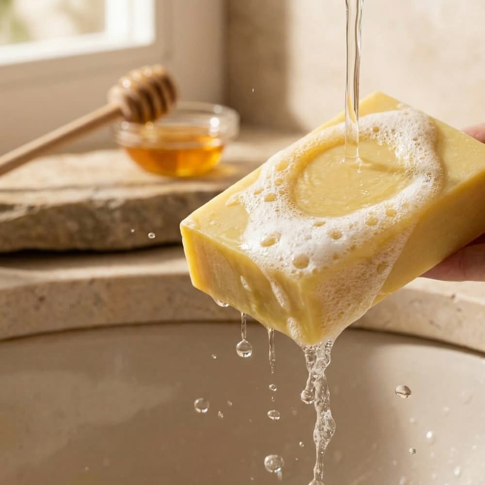 Συστατικά : Σαπωνοποιημένα φυτικά λίπη, ελαιόλαδο, μέλι, θαλασσινό αλάτι