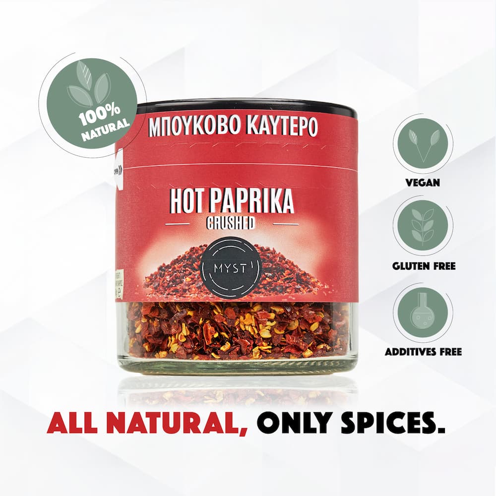 Hot Chili Flakes add bold flavor and character to every dish. Use them in legumes, vegetable stews, soups, roasted potatoes, trahanas, grilled vegetables, pasta, meats, poultry, and seafood to bring out a naturally spicy and aromatic touch.