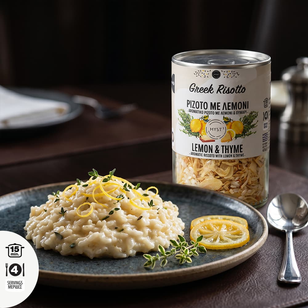 Experience a vibrant and refreshing risotto inspired by the bright flavors of the Mediterranean. The lively notes of lemon combine harmoniously with carefully selected thyme, creating a light yet aromatic dish that awakens the senses.