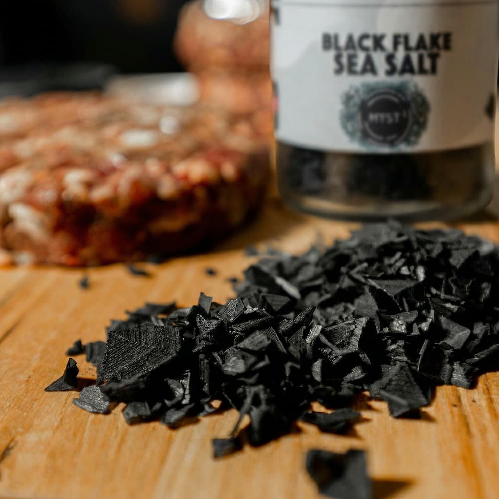 Havssaltflingor med aktivt kol framställs genom långsam, naturlig avdunstning från rena medelhavsvatten och berikas med växtbaserat aktivt kol. Utan kemisk bearbetning bevaras alla naturliga mineraler och havets jod, vilket ger ett högkvalitativt salt med en distinkt svart färg.